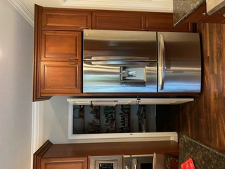 Perhaps our favorite addition to the kitchen remodel was adding in a hidden pantry. The hidden pantry is flush with the refrigerator, making it look seamless. Once you open the doors, you step into the walk-in pantry which has ample space for storing food and extra kitchen supplies.